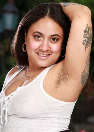 - Description: Tattooed hairy babe Kingsley coating her beautiful curvy body with lotion & playing with her fuzzy pits for all to enjoy. Brought to you by Flowers.